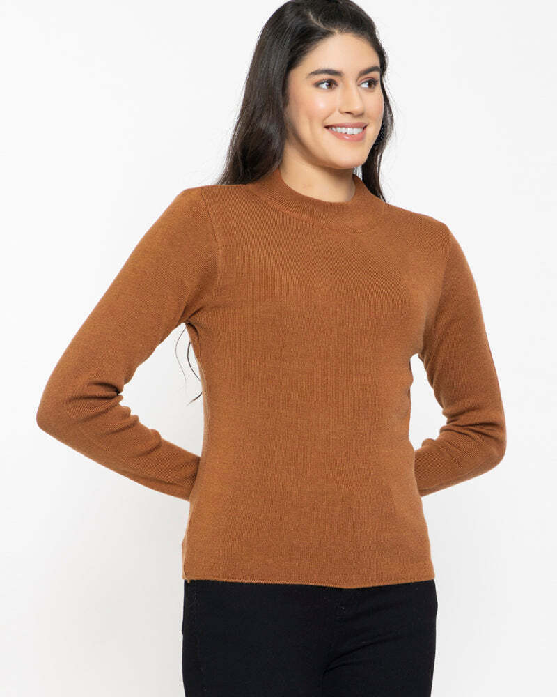 RVK Women Solid Acrylic Pullover Sweater-Brick