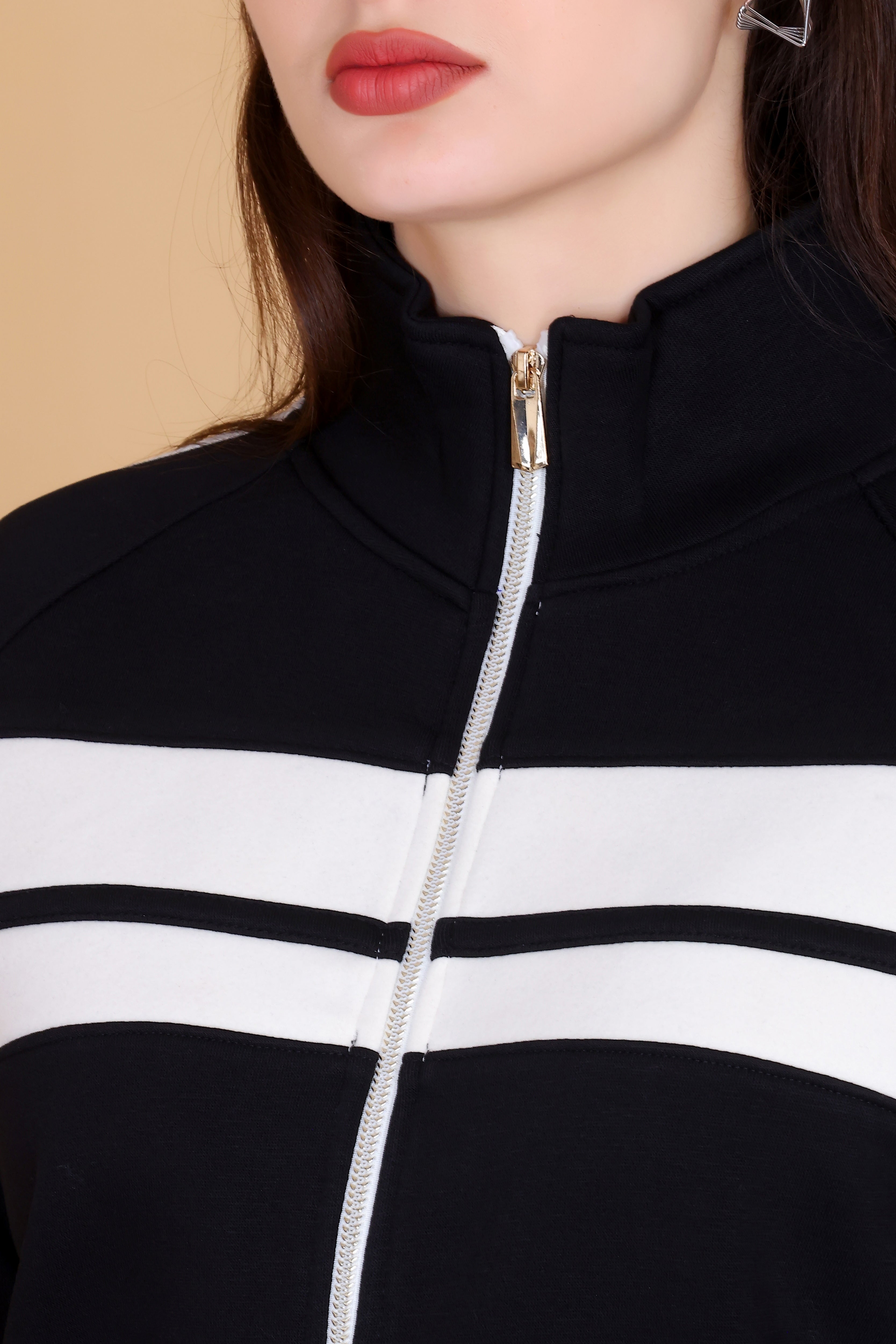 Femea Women’s Stylish Zip-Up Tracksuit Set with Contrast Panel Design